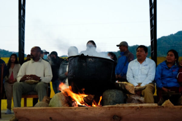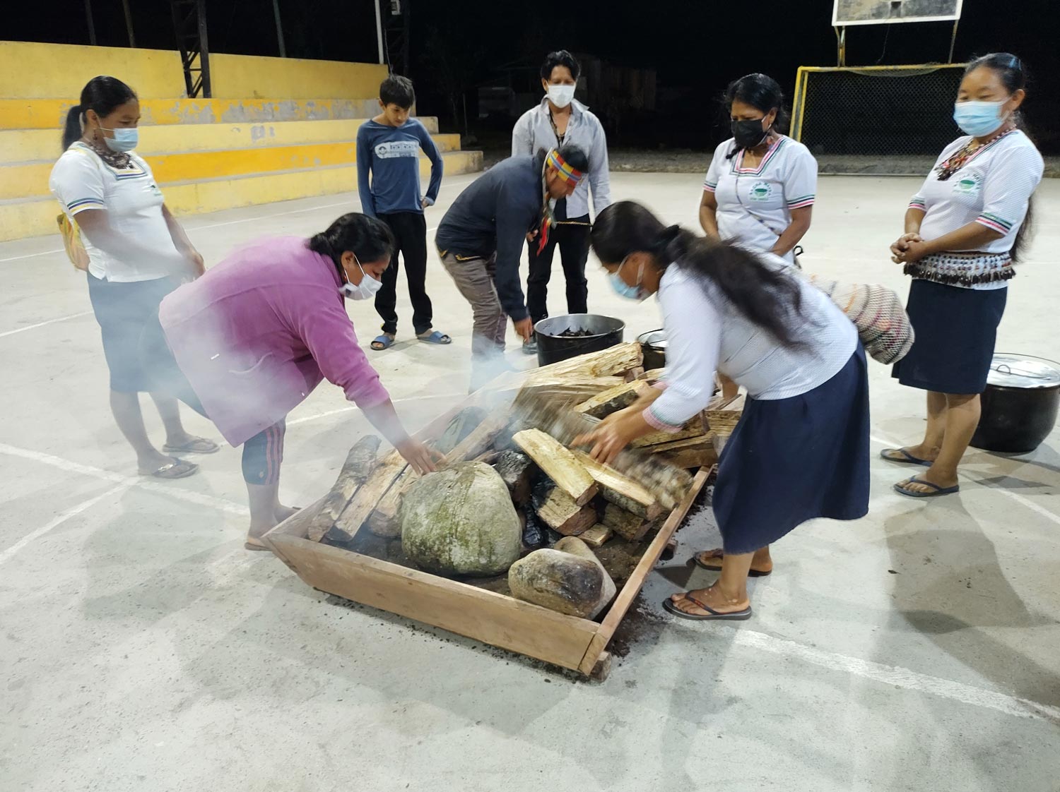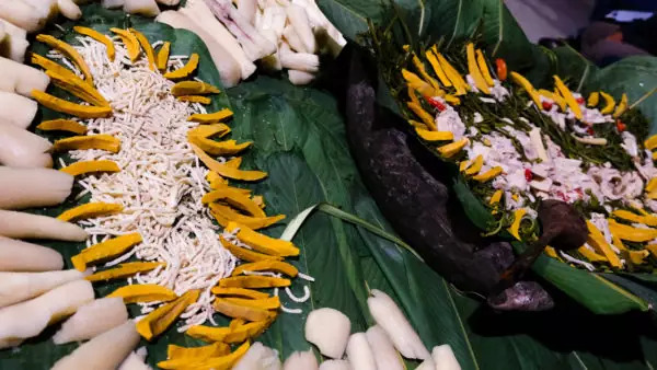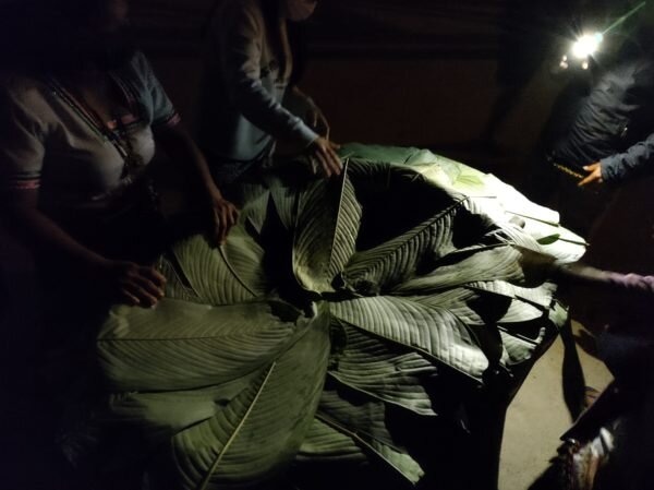 Das gesamte Ritual begann mit einem Feuer. Dann wird das Essen aufbereitet und die vielen Maito-Blätter auf einem Tisch, als Tischdecke, ausgebreitet. Daraufhin wurde eine riesige Schüssel, mit dem traditionellen Frühstück, aus regionalen Lebensmitteln, auf dem Tisch präsentiert. Dies alleine sah schon wie das Meisterwerk dieser Nacht aus.