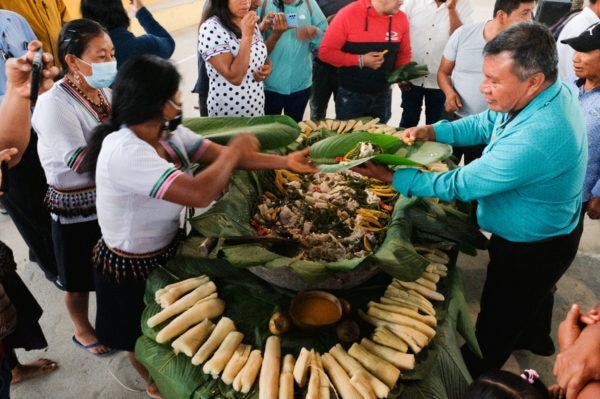 Der weise Mann wandte sich entsprechend zur Stadträtin und sah ihr direkt in die Augen, während er Verse auf Kichwa sprach und auf die Funktionen hinwies, die sie als Politkerin erfüllen muss.