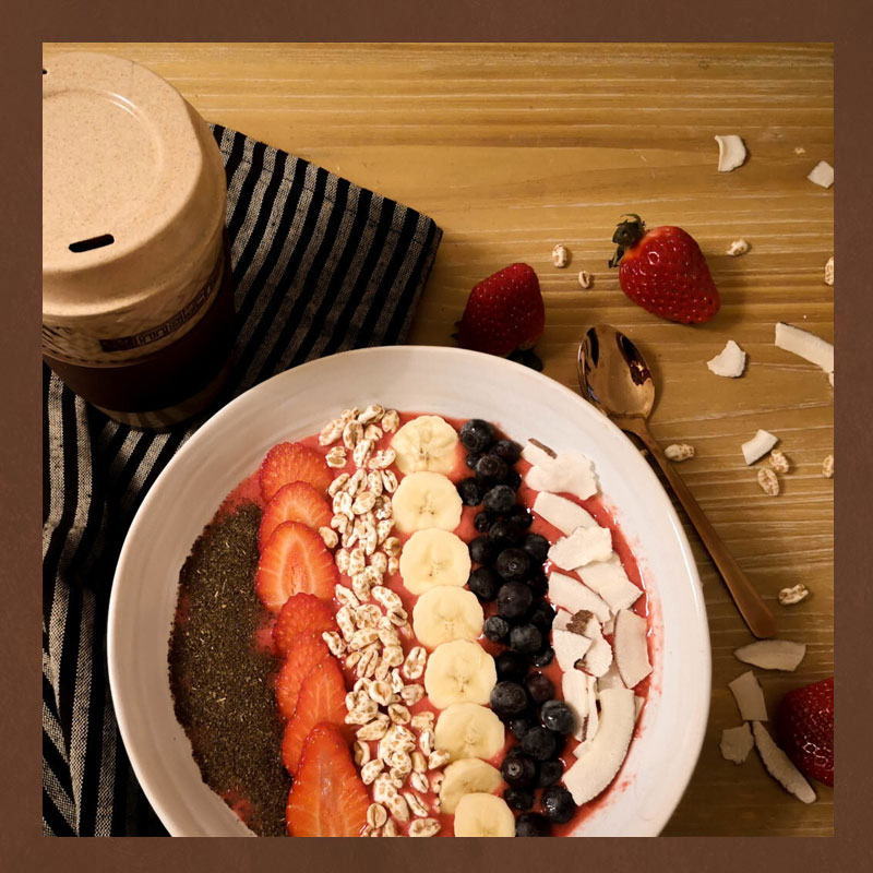 Herrlich erfrischende "Start in den Tag" Bowl. Mit Früchten, Crunch und Guayusa.