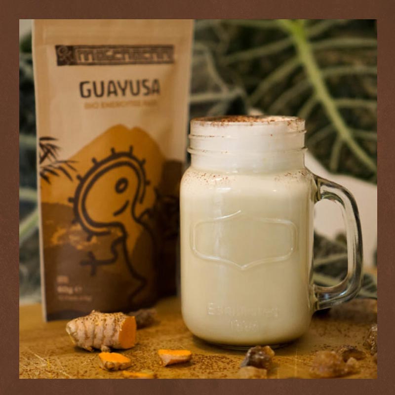 Latte Macchiato war gestern! Bühne frei für unseren exklusiven Guayusa-Latte: Statt Espresso gibts einen Schuss von unserem köstlichen Guayusa in die Milch. Ordentlich durchgewirbelt entsteht ruckzuck ein Wachmacher wie aus den Coffeeshops. Damit lässt’s sich gut in den Tag starten.