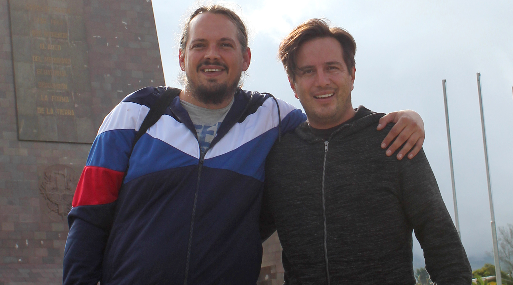(Auf dem Bild seht Ihr rechts Pablo und links Joshua in Quito am Äquator)